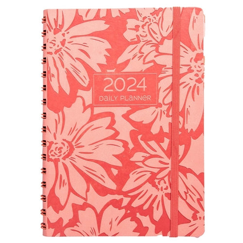 2024 A5 Daily Planner - Apricot Blossoms - Imitation Leather Wire-bound